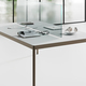 Aluminiumsrammen, den indbyggede bordplade og de afrundede kanter definerer en ny stil. Opbevaring leveres af stringente og kompakte volumener, der afbalancerer bordets bløde former. En formel dialog, der karakteriserer hele kollektionen. Møder afholdes omkring firkantede eller rektangulære borde, med central adgang til bordpladen. Æstetiske valg varierer fra en-farve konfigurationer til top-og-ramme kombinationer. CAM-certificeret produkt.