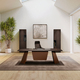 Monoliths topdesign integrerer funktionelle løsninger til kabelhåndtering, hvilket sikrer et rent og ryddeligt arbejdsområde. Tilgængelig i luksuriøse overflader såsom marmor-effekt keramik og skifer-effekt overflader, tilbyder dette skrivebord en kombination af elegance og holdbarhed. Tilpasningsmuligheder, herunder indlæg i fint træ eller øko-læder, forbedrer både komfort og æstetisk appel.