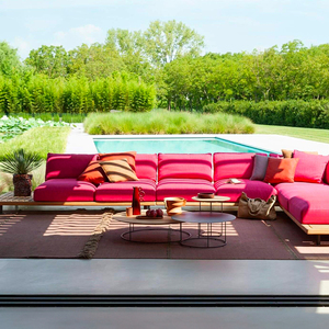 Modulsofaer, loungestole, solsenge og udendørs spiseborde og stole skaber en raffineret balance mellem tyngde og lethed. Rammer i pulverlakeret aluminium og aftagelige puder i tekniske stoffer garanterer både komfort og holdbarhed.